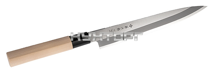 Нож Янагиба Tojiro F-1056 предназначен для суши, сашими, нарезки рыбы и нежного мяса в ресторанах, кафе. Лезвие выполнено из высококачественной высокоуглеродистой однослойной стали, устойчивой к коррозии, рукоятка - из древесины.