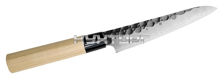Шеф нож Tojiro F-1115 предназначен для нарезки овощей, корнеплодов, полуфабрикатов, разделки мяса, рыбы и птицы в ресторанах, кафе. Лезвие выполнено из высококачественной закалённой трёхслойной стали, устойчивой к коррозии. Рукоятка, имеет эллиптический профиль с одной спрямленной боковиной, выполнена из древесины магнолии с пластмассовой оковкой.