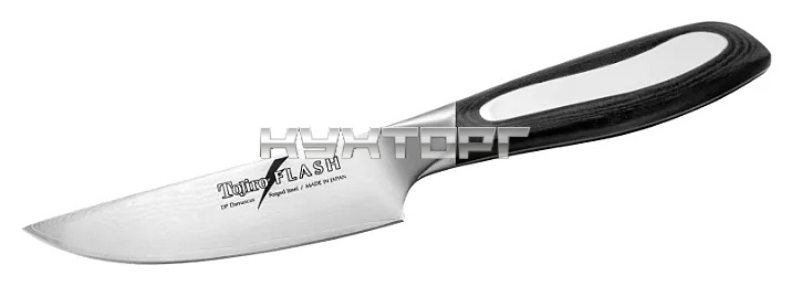 Универсальный нож Tojiro FF-TE125 предназначен для всех работ по мясу, рыбе в ресторанах, кафе. Лезвие выполнено из высококачественной нержавеющей тридцатисемислойной стали, устойчивой к коррозии. Рукоятка выполнена из нескольких слоёв, покрыта слоистым рисунком Micarta.