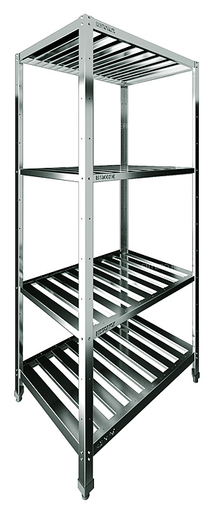 Кухонный стеллаж Restoinox СТПР-8/3-ЭН предназначен для хранения посуды, инвентаря и продуктов, не требующих специального температурного режима, на предприятиях общественного питания и торговли. Модель оснащена 4 регулируемыми по высоте полками-решетками. Разборный каркас выполнен из уголка 40х40 мм нержавеющей стали AISI 430, полки - из нержавеющей стали AISI 430.
