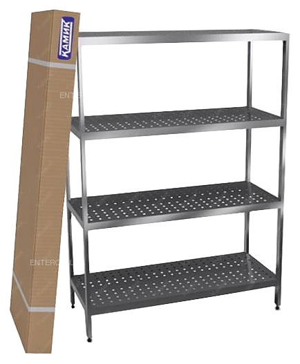 Кухонный стеллаж КАМИК Ст-Р-19605 предназначен для хранения посуды, кухонных приборов и принадлежностей, а также продуктов, не требующих специального температурного режима, на предприятиях общественного питания и торговли. Разборный каркас выполнен из трубы 40x20 мм нержавеющей стали AISI 430, перфорированные полки - из нержавеющей стали AISI 430.