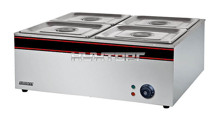 Мармит Airhot BM-4 используется на предприятиях общественного питания для поддержания температуры ранее приготовленных вторых блюд, гарниров и соусов, без их подгорания и возможного пересушивания. Это позволяет подавать блюда горячими и при этом сохранить все вкусовые качества приготовленного продукта. В комплект поставки входят 4 гастроемкости.