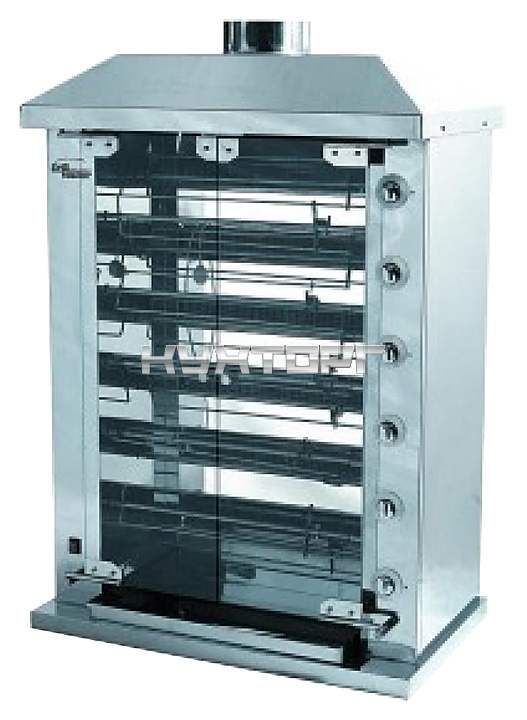 Гриль для кур Grill Master Ф6У1Г используется на предприятиях общественного питания и торговли для приготовления тушек кур, куриных окорочков, грудок и других продуктов. Модель оснащена системой газ-контроля, 6 съемными автономными инфракрасными горелками и 6 газовыми кранами и внутренней подсветкой. Корпус выполнен из нержавеющей стали, двери - из закаленного стекла.