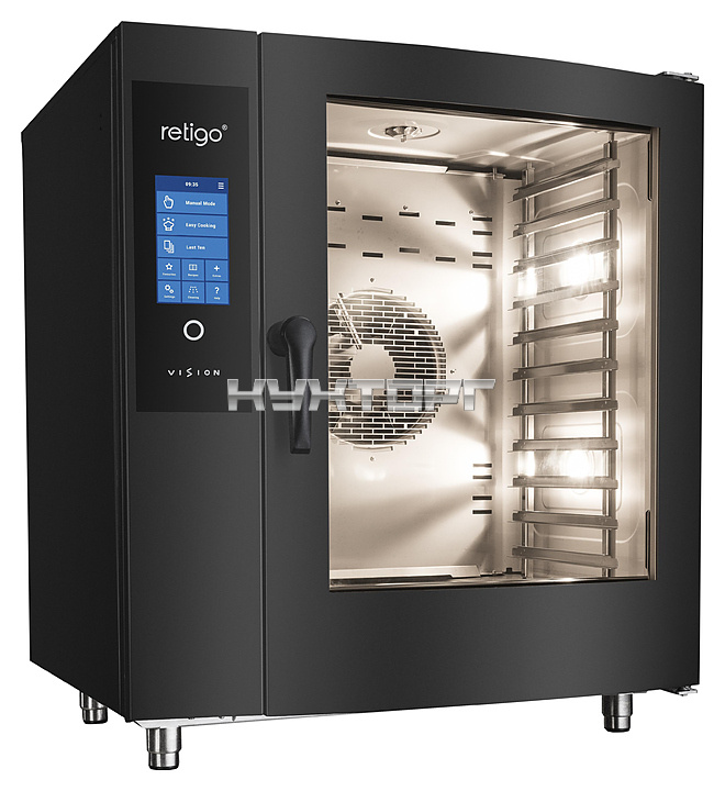 Пароконвектомат Retigo B611I VISION II серии Blue Vision II предназначен для обжаривания, приготовления на пару, бланширования, запекания и других видов тепловой обработки продуктов на фабриках-кухнях, предприятиях общественного питания и торговли. Оборудование заменяет сразу несколько видов приборов: плиту, конвекционную печь, жарочный шкаф, духовку, опрокидывающуюся сковороду, пищеварочный котел и фритюрницу. Приготовленные в пароконвектомате блюда сохраняют все полезные вещества. Модель оснащена сенсорной панелью управления.