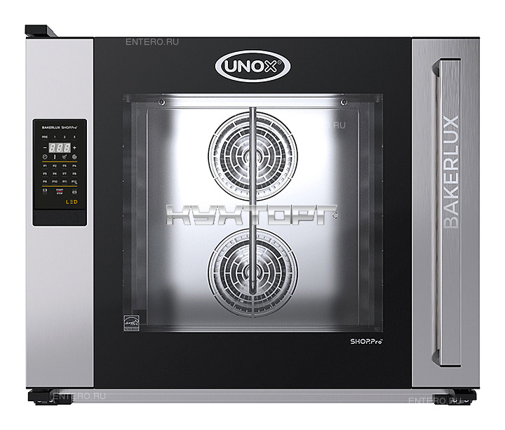 Печь конвекционная UNOX XEFT-06EU-ELRV серии BakerLux Shop.Pro предназначена для приготовления различных блюд, выпечки хлебобулочных и кондитерских изделий на предприятиях общественного питания и торговли, в пекарнях и кондитерских. Модель оснащена электронным освещением, светодиодной подсветкой и L-образными направляющими. Легко открывающееся внутреннее стекло облегчают чистку и обеспечивает максимальную гигиену. Камера выполнена из нержавеющей стали, направляющие - из хромированной стали.
