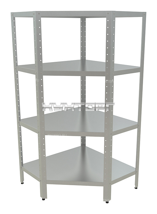 Угловой кухонный стеллаж Кобор СКУ-5/6-100/90/430 предназначен для хранения посуды, различного инвентаря и сухих продуктов на предприятиях общественного питания и торговли. Модель оснащена сплошными полками. Разборный каркас выполнен из уголка из нержавеющей стали AISI 430, полки - из нержавеющей стали AISI 430.