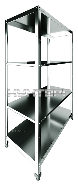 Кухонный стеллаж Restoinox СТП-7/3-ЭЦ предназначен для хранения посуды, инвентаря и продуктов, не требующих специального температурного режима, на предприятиях общественного питания и торговли. Модель оснащена 4 регулируемыми по высоте сплошными полками и ребрами жесткости. Разборный каркас выполнен из уголка 40х40 мм оцинкованной стали, ребра жесткости и полки - из нержавеющей стали AISI 430.