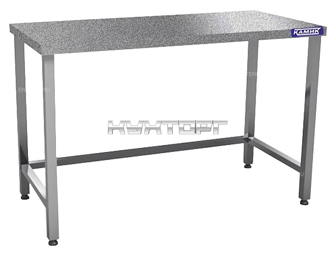 Кондитерский стол КАМИК С-К-477 используется на предприятиях общественного питания и торговли для разделки и обработки пищевых продуктов, а также для расстановки и хранения посуды и кухонного инвентаря. Модель оснащена обвязкой с трех сторон. Каркас выполнен из трубы нержавеющей стали AISI 430, столешница - из гранита.