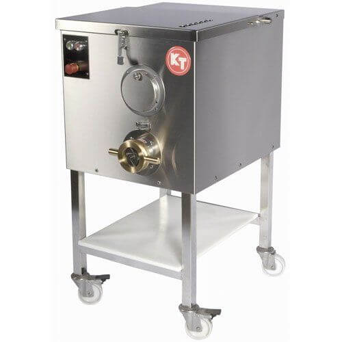 Мясорубка Koneteollisuus Oy (KT) LM-82/А предназначена для переработки мяса в фарш и набивки колбас на предприятиях пищевой промышленности и торговли. Мясо предварительно нарезают на небольшие куски и укладывают в загрузочный бункер. Внутри бункера непрерывно двигаются лопасти, которые перемешивают мясо. Затем мясо захватывается шнеком, расположенным в нижней части бункера и подается к режущему механизму. Модель оснащена мощным двигателем, равномерным ходом и низким уровнем шума при работе. Корпус выполнен из чугуна, шнек - из алюминия.