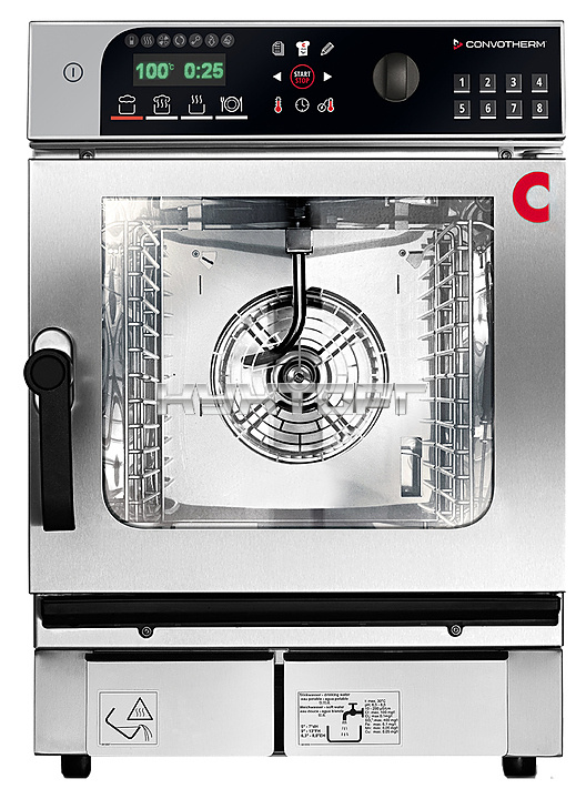 Пароконвектомат Convotherm Mini Standard 6.06 mobile предназначен для обжаривания, приготовления на пару, бланширования, запекания и других видов тепловой обработки продуктов на предприятиях общественного питания. Модель оснащена цифровым дисплеем и вентилятором с уменьшенной скоростью вращения и автореверсом.