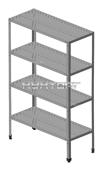Стеллаж ITERMA СТК-П-Э-12/6 предназначен для хранения посуды, кухонной утвари и сухих продуктов на предприятиях общественного питания и торговли. Модель оснащена ребром жесткости и ножками, регулирующимися по высоте для сглаживания неровностей пола. Каркас выполнен из уголка 40х40 мм из оцинкованной стали, перфорированные полки - из нержавеющей стали AISI 430 толщиной 0,5 мм.