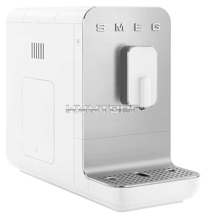 Кофемашина Smeg BCC01WHMEU предназначена для приготовления эспрессо и кофейных напитков на его основе в частных домах и квартирах. Модель выполнена в стиле 50-х годов. Корпус изготовлен из цветного матового пластика, фронтальная панель и решетка поддона для капель - из матового алюминия с полированной рамкой, жернова кофемолки - из нержавеющей стали.
