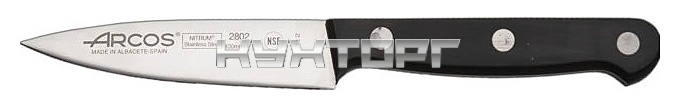 Кухонный нож Arcos Universal 2802-B используется на предприятиях общественного питания и торговли, а также в частных домах и квартирах для чистки. Лезвие ножа изготовлено из сплава стали Nitrum - нержавеющая сталь с повышенной прочностью, режущими качествами и безупречной устойчивостью к коррозии. Рукоять выполнена из полиоксиметилена - инновационного полимерного материала, обладающего превосходными ударопрочными и влагостойкими свойствами.