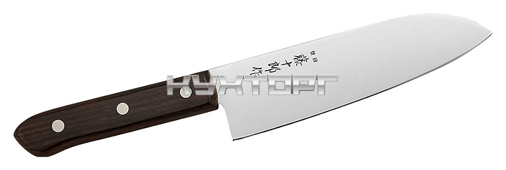 Японский нож сантоку Fuji Cutlery TJ-50 предназначен для чистки, нарезания, шинкования любых продуктов в домашних уловиях. Лезвие выполнено из высококачественной нержавеющей стали Mo-V, устойчивой к коррозии, эргономичная рукоятка - из розового дерева с накладками из полиоксиметилена.