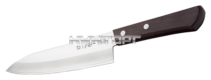 Нож для шефа Kanetsugu 2004 предназначен для нарезки овощей, корнеплодов, полуфабрикатов, разделки мяса, рыбы и птицы. Лезвие выполнено из особой стали AUS8, рукоятка - из стабилизированной древесины уплотнено дополнительными обкладками, полностью устойчивыми к коррозии.