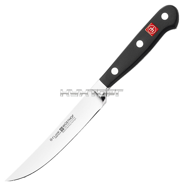 Кухонный нож Wüsthof 4068 WUS предназначен для нарезки стейка на предприятиях общественного питания и торговли, а также в частных домах и квартирах. Изделие выполнено из кованой нержавеющей молибден-ванадиевой стали X50CrMoV15, отличающейся высочайшим уровнем прочности, повышенной стойкостью к коррозии и оптимальной твердостью, ручка - из термопластичного износостойкого полиоксиметилена, устойчивого к воздействию разницы температур, кислотам и щелочи.