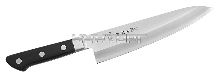 Нож для шефа Fuji Cutlery TJ-121 предназначен для нарезки овощей, корнеплодов, полуфабрикатов, разделки мяса, рыбы и птицы в ресторанах, кафе, а также на домашней кухне. Лезвие выполнено из высококачественной нержавеющей стали Мо-V, устойчивой к коррозии, эргономичная рукоятка - из полипропилена.