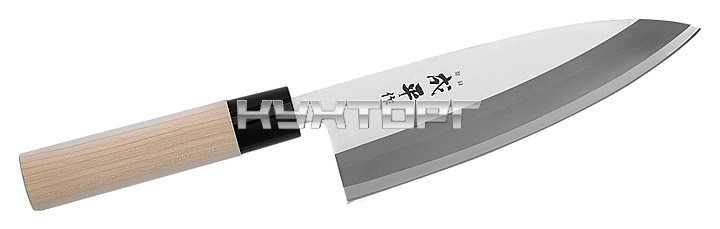 Нож деба Fuji Cutlery FC-73 предназначен для разделки рыбы в ресторанах, кафе. Клинок ножа широкий, с ассиметричной заточкой под правшу. Обушок округлый для удобства нажима другой рукой при работе с крупной рыбой. Лезвие выполнено из высококачественной нержавеющей стали Mo-V, устойчивой к коррозии, рукоятка - из дерева.
