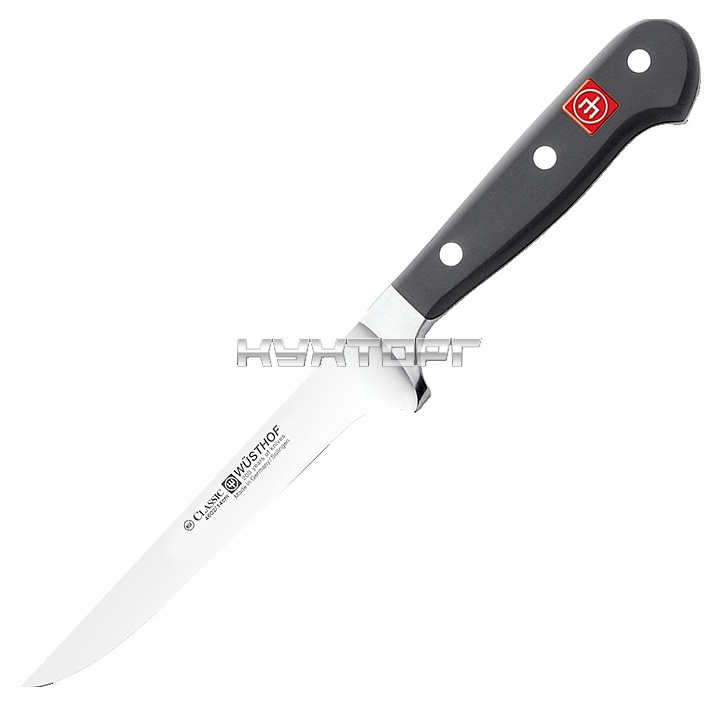 Кухонный обвалочный нож Wüsthof Classic 4603 предназначен для нарезки филе на предприятиях общественного питания и торговли, а также в частных домах и квартирах. Изделие выполнено из кованой нержавеющей молибден-ванадиевой стали X50CrMoV15, отличающейся высочайшим уровнем прочности, повышенной стойкостью к коррозии и оптимальной твердостью, ручка - из термопластичного износостойкого полиоксиметилена, устойчивого к воздействию разницы температур, кислотам и щелочи.