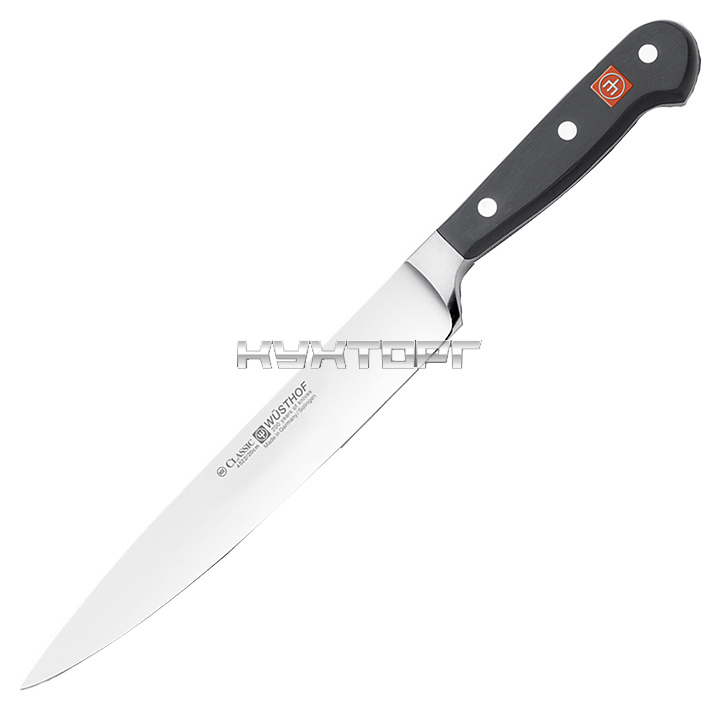 Нож Wüsthof 4522/20 предназначен для нарезки мяса на предприятиях общественного питания и торговли, а также в частных домах и квартирах. Изделие выполнено из кованой нержавеющей молибден-ванадиевой стали X50CrMoV15, отличающейся высочайшим уровнем прочности, повышенной стойкостью к коррозии и оптимальной твердостью, ручка - из термопластичного износостойкого полиоксиметилена, устойчивого к воздействию разницы температур, кислотам и щелочкам.
