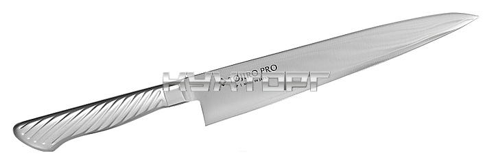 Универсальный нож Tojiro F-845 предназначен для очистки и нарезки фруктов и овощей, для обвалки птицы, подготовки рыбы, жиловки мяса в ресторанах, кафе. Лезвие выполнено из высококачественной закалённой стали VG-10, устойчивой к коррозии, рукоятка - из нержавеющей стали 18-8.