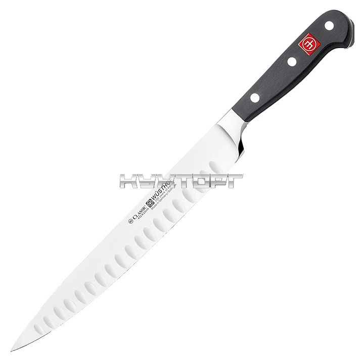Кухонный нож Wüsthof Classic 4524/20 предназначен для нарезки мяса на предприятиях общественного питания и торговли, а также в частных домах и квартирах. Изделие выполнено из кованой нержавеющей молибден-ванадиевой стали X50CrMoV15, отличающейся высочайшим уровнем прочности, повышенной стойкостью к коррозии и оптимальной твердостью, ручка - из термопластичного износостойкого полиоксиметилена, устойчивого к воздействию разницы температур, кислотам и щелочи.