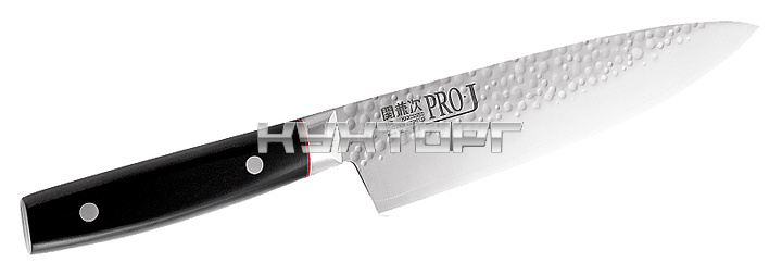 Японский нож сантоку Kanetsugu 6005 предназначен для чистки, нарезания, шинкования любых продуктов. Рукоять выполнена из коррозионностойкой стали, которую обрамляют защитные накладки из не гниющего пластика. Лезвие изготавливается по специальной трёхслойной технологии. В середине расположен режущий слой из лучшей ножевой стали VG10 компании Takefu, в обрамлении из вязкой и прочной стали AUS-2.