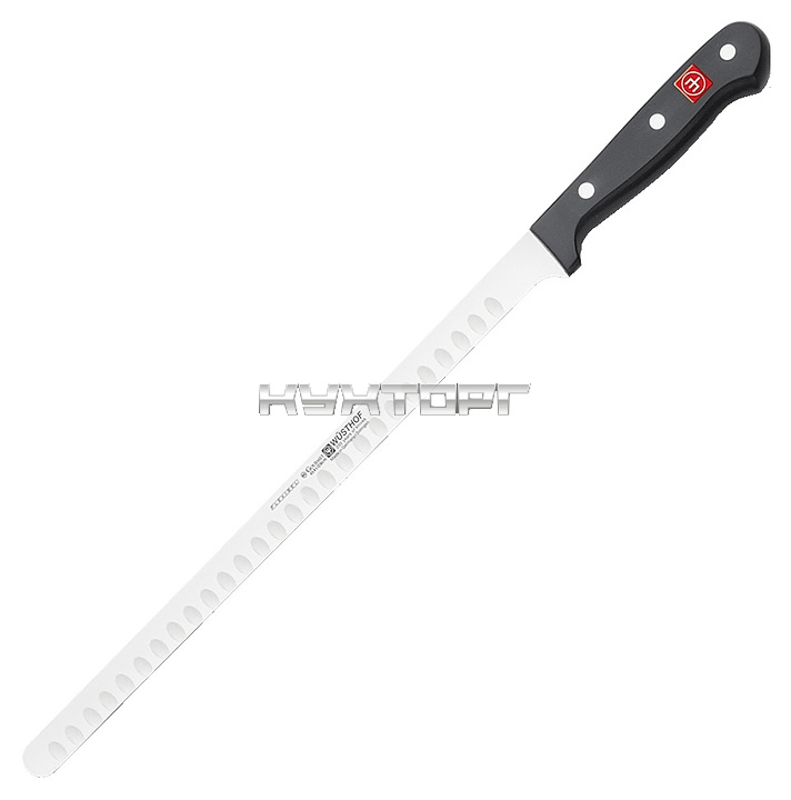 Кухонный нож Wüsthof Gourmet 4541 предназначен для тонкой нарезки рыбы и морепродуктов на предприятиях общественного питания и торговли, а также в частных домах и квартирах. Лезвие изготовлено из прокатной нержавеющей молибден-ванадиевой стали X50CrMoV15, отличающейся высочайшим уровнем прочности, повышенной стойкостью к коррозии и оптимальной твердостью, рукоять - из термопластичного износостойкого полиоксиметилена, устойчивого к воздействию разницы температур, кислотам и щелочи.