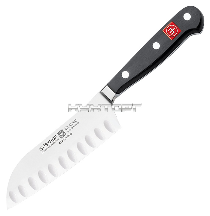 Кухонный нож Сантоку Wüsthof Classic 4182 предназначен для использования на предприятиях общественного питания и торговли, а также в частных домах и квартирах. Изделие выполнено из кованой нержавеющей молибден-ванадиевой стали X50CrMoV15, отличающейся высочайшим уровнем прочности, повышенной стойкостью к коррозии и оптимальной твердостью, ручка - из термопластичного износостойкого полиоксиметилена, устойчивого к воздействию разницы температур, кислотам и щелочи.