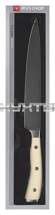 Кухонный нож Wüsthof Ikon Cream White 4506-0/20 WUS предназначен для нарезки мяса на предприятиях общественного питания и торговли, а также в частных домах и квартирах. Изделие выполнено из высокоуглеродистой нержавеющей молибден-ванадиевой стали X50CrMoV15, отличающейся высочайшим уровнем прочности, повышенной стойкостью к коррозии и оптимальной твердостью. Рукоять изготовлена из полиоксиметилена - инновационного синтетического материала с оксидом кремния, который обладает высочайшей ударопрочностью, влагонепроницаемостью и гигиеничностью.