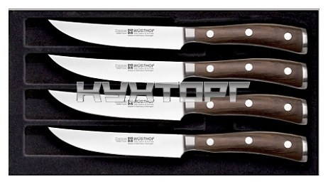 Набор кухонных ножей Wüsthof Ikon 9706 WUS предназначен для нарезки стейков на предприятиях общественного питания и торговли, а также в частных домах и квартирах. Лезвия изготовлены из нержавеющей молибден-ванадиевой стали X50CrMoV15, отличающейся высочайшим уровнем прочности, повышенной стойкостью к коррозии и оптимальной твердостью, рукоять - из африканского черного дерева со специальной пропиткой.