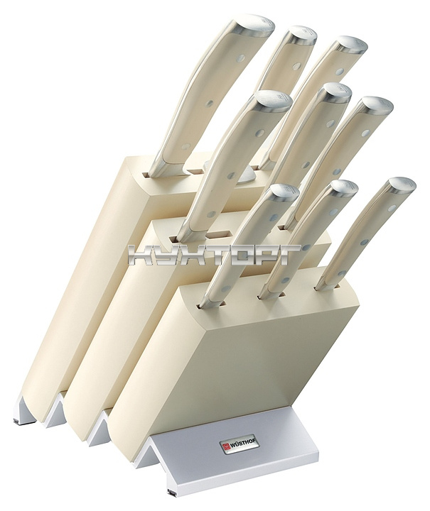 Набор кухонных ножей Wüsthof Ikon Cream White 9874 предназначен для использования на предприятиях общественного питания и торговли, а также в частных домах и квартирах. Изделия выполнены из кованой нержавеющей молибден-ванадиевой стали X50CrMoV15, отличающейся высочайшим уровнем прочности, повышенной стойкостью к коррозии и оптимальной твердостью, рукояти - из термопластичного износостойкого полиоксиметилена, устойчивого к воздействию разницы температур, кислотам и щелочи, подставка - из бука.