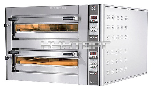 Печь для пиццы Cuppone Donatello DN435/2CD используется на предприятиях общественного питания и торговли. Модель оснащена 2 панелями управления с цифровыми коммутаторами, дверями с обзорными стеклами и галогеновым освещением камер выпекания. Фасад и камеры выпекания выполнены из нержавеющей стали.