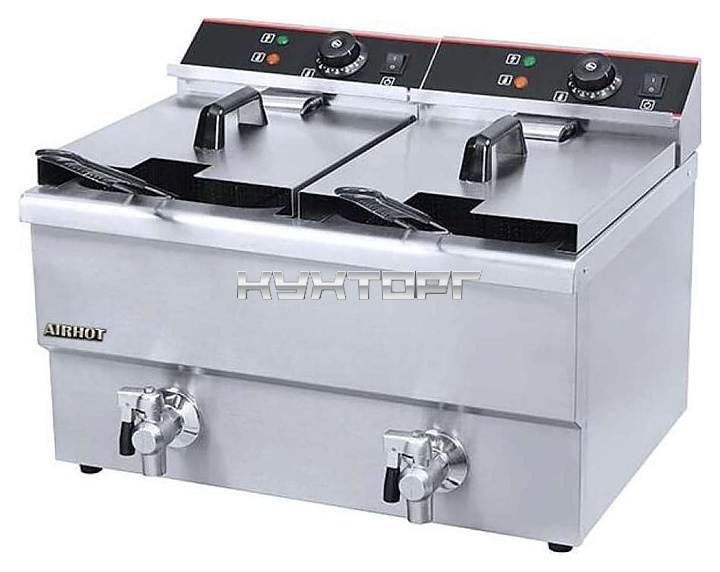 Фритюрница Airhot EF8T+8T предназначена для приготовления различных продуктов в большом количестве масла на предприятиях общественного питания и торговли. Модель оснащена холодной зоной. Корпус и ванна выполнены из нержавеющей стали.