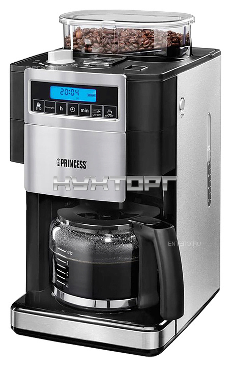 Кофеварка Princess 249402 используется в частных домах, квартирах, отелях и офисах для приготовления кофе из молотых зерен. Модель оснащена электронной панелью управления с цифровым дисплеем, встроенной кофемолкой с коническими жерновами и прозрачным бункером для зерен. Корпус выполнен из пластика и нержавеющей стали, колба для кофе - из стекла.
