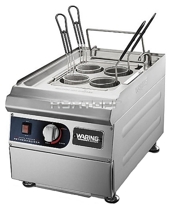 Макароноварка Waring WPC100E используется на предприятиях общественного питания и торговли для приготовления замороженного и свежего продукта. Модель оснащена сливным и заливным клапанами, которые размещены спереди для удобства.Корпус и нагревательные элементы выполнены из нержавеющей стали.