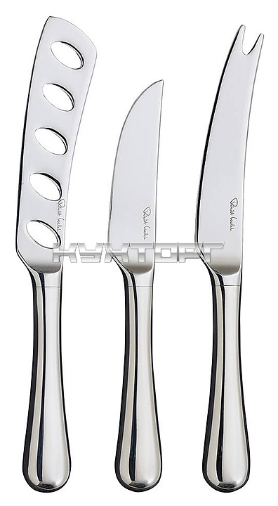 В комплект входят: нож для твердого сыра, универсальный сырный нож, нож для мягкого сыра.