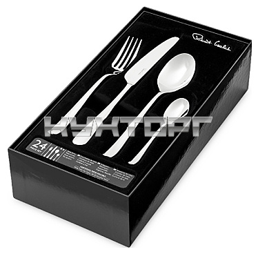 В комплект поставки входит 6 столовых ножей, 6 столовых вилок, 6 суповых ложек, 6 английских чайных ложек.