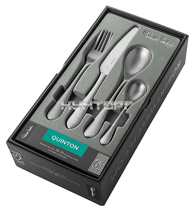 Набор столовых приборов ROBERT WELCH Quinton используется на предприятиях общественного питания и торговли, а также в частных домах и квартирах. Изделия подходят для мытья в посудомоечной машине. Приборы изготовлены из специально закаленной нержавеющей стали 18/10 с зеркальной полировкой, чтобы режущая кромка была максимально тонкой.