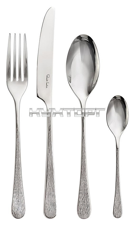 В комплект поставки входит 6 столовых ножей, 6 столовых вилок, 6 суповых ложек, 6 английских чайных ложек.