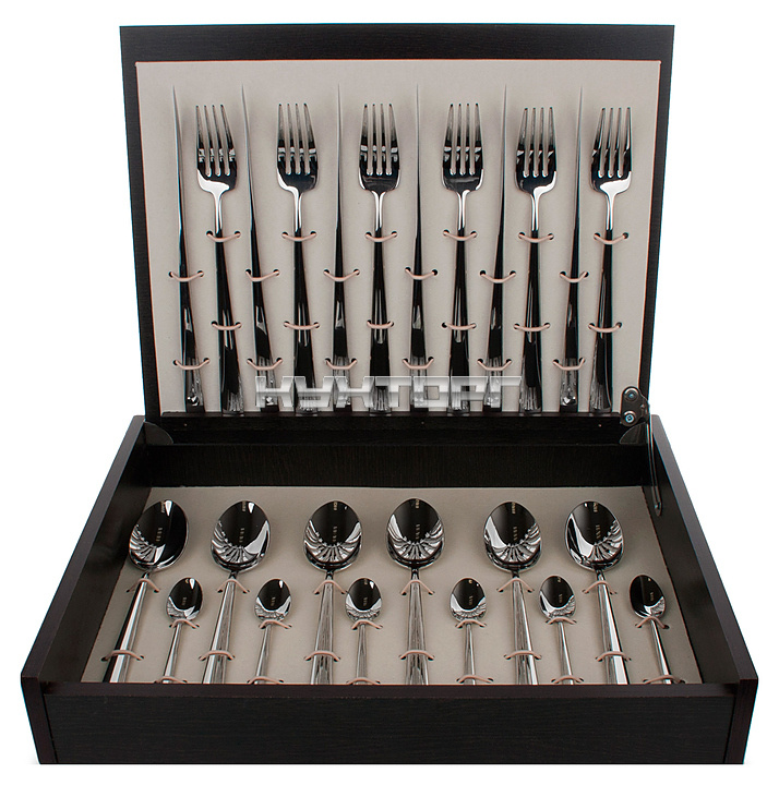 В комплект поставки входят 6 столовых ножей, 6 столовых вилок, 6 столовых ложек и 6 чайных ложек.