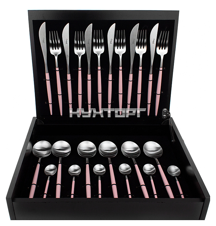 В комплект поставки входят 6 столовых ножей, 6 столовых вилок, 6 столовых ложек и 6 чайных ложек.