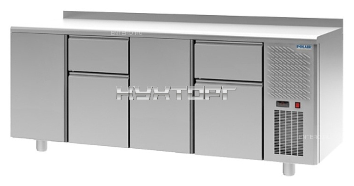 от -2 до 10 °С; нерж. сталь; 2 двери; 4 ящика; с бортом; 2060 мм; 605 мм |