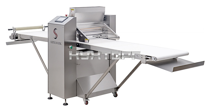 Тестораскаточная автоматическая машина SUPERMATIC 630B-SS используется на предприятиях общественного питания и торговли, в пекарнях и кондитерских для раскатки слоеного теста и формирования тестовых заготовок, используемых для последующего приготовления пиццы, лепешек и хлебобулочных изделий. Модель оснащена автоматическим мукопосыпателем и панелью управления. Корпус выполнен из нержавеющей стали AISI 304.