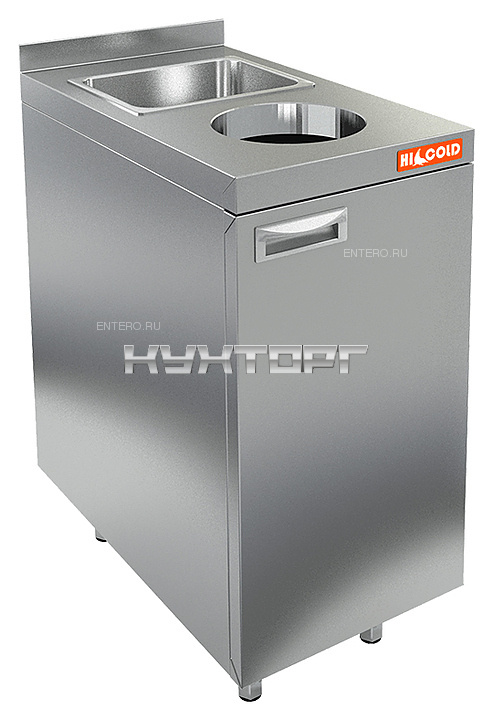 Стол под мусорный бак HICOLD НБМСЗМДСО-4/7Б используется на предприятиях общественного питания и торговли для комплектации барных стоек. Модель оснащена мойкой и отверстием для сбора отходов. Корпус выполнен из нержавеющей стали AISI 430, столешница - из нержавеющей стали AISI 430 толщиной 1 мм и усилена ребрами жесткости.