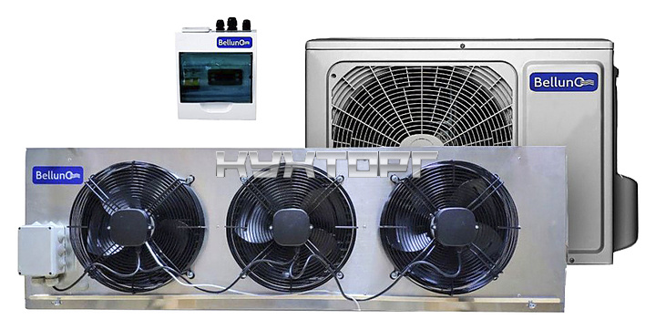 Сплит-система Belluna P102 серии Инвертор Профи предназначена для поддержания необходимого температурного режима в холодильных камерах на предприятиях пищевой промышленности, общественного питания и цветочных магазинах. Холодильная машина состоит из наружного блока, внутреннего блока и щита управления. Для работы сплит-системы толщина пенополиуретановых панелей в холодильной камере должна быть не менее 80 мм.