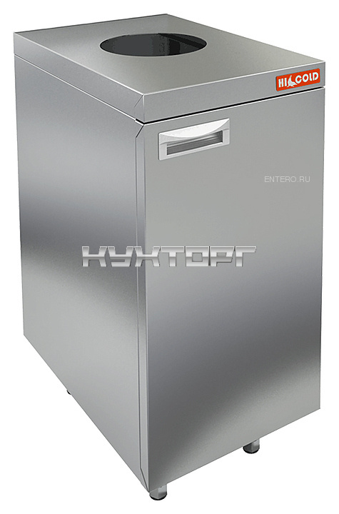 Стол под мусорный бак HICOLD НБМДСО-4/7 используется на предприятиях общественного питания и торговли для комплектации барных стоек. Модель оснащена отверстием для сбора отходов. Корпус выполнен из нержавеющей стали AISI 430, столешница - из нержавеющей стали AISI 430 толщиной 1 мм и усилена ребрами жесткости.