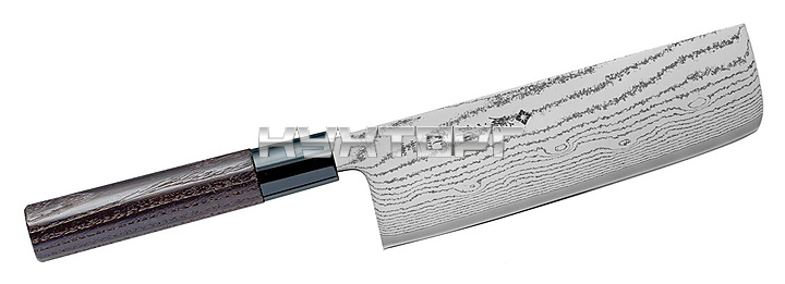 Нож накири Tojiro FD-598 предназначен для шинковки всех видов корнеплодов и фруктов в ресторанах, кафе. Лезвие выполнено из высококачественной высокоуглеродистой шестидесятитрёхслойной стали, рукоятка - из древесины.