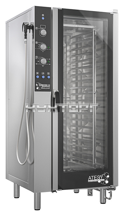 Пароконвектомат ATESY РУБИКОН АПК-20-1.1-03-1 3-го поколения используется на предприятиях общественного питания и торговли для приготовления широкого спектра блюд как на пару, так и при помощи сухого нагрева. Модель оснащена набором поворотных ручек и кнопок, позволяющим легко задавать параметры работы. Дверца камеры оснащена двойным закаленным стеклом с воздушным зазором.