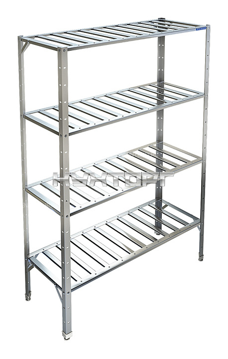Кухонный стеллаж Техно-ТТ СТР-024/1503 предназначен для хранения посуды, различного инвентаря и сухих продуктов на предприятиях общественного питания и торговли. Модель оснащена регулируемыми по высоте полками и ножками, что позволяет компенсировать неровности пола. Разборный каркас выполнен из уголка 40х40 мм нержавеющей стали AISI 430 толщиной 2 мм, решетчатые полки - из нержавеющей стали AISI 430 толщиной 0,8 мм.